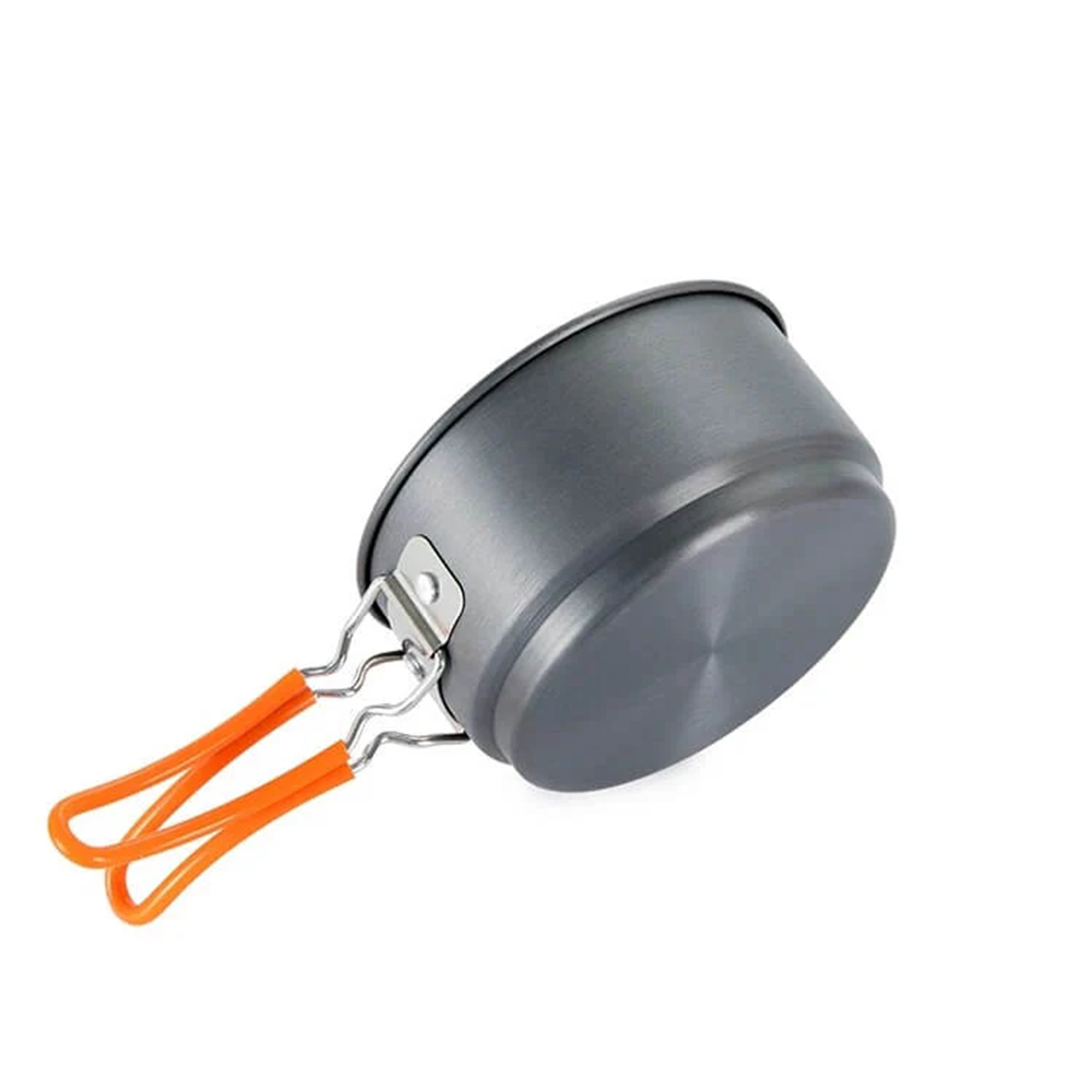 It can hold a 220g gas canister and a stove, suitable for day hikes for 1 or 2 people. The foldable handle is covered with a layer of silicone to prevent burns . The heat exchanger on the bottom can increase the heat efficiency rate by 30%, which increases the efficiency of fuel utilization and saves.