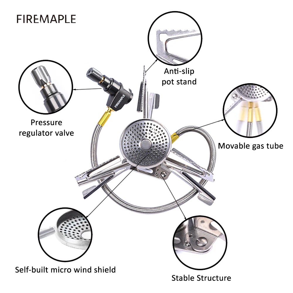 COMPATIBLE : Folding and anti-slip pot stands provide stability for various diameters of cookware pots and pans. The self-built micro windshield and movable gas tube will complete any outdoor activities.
