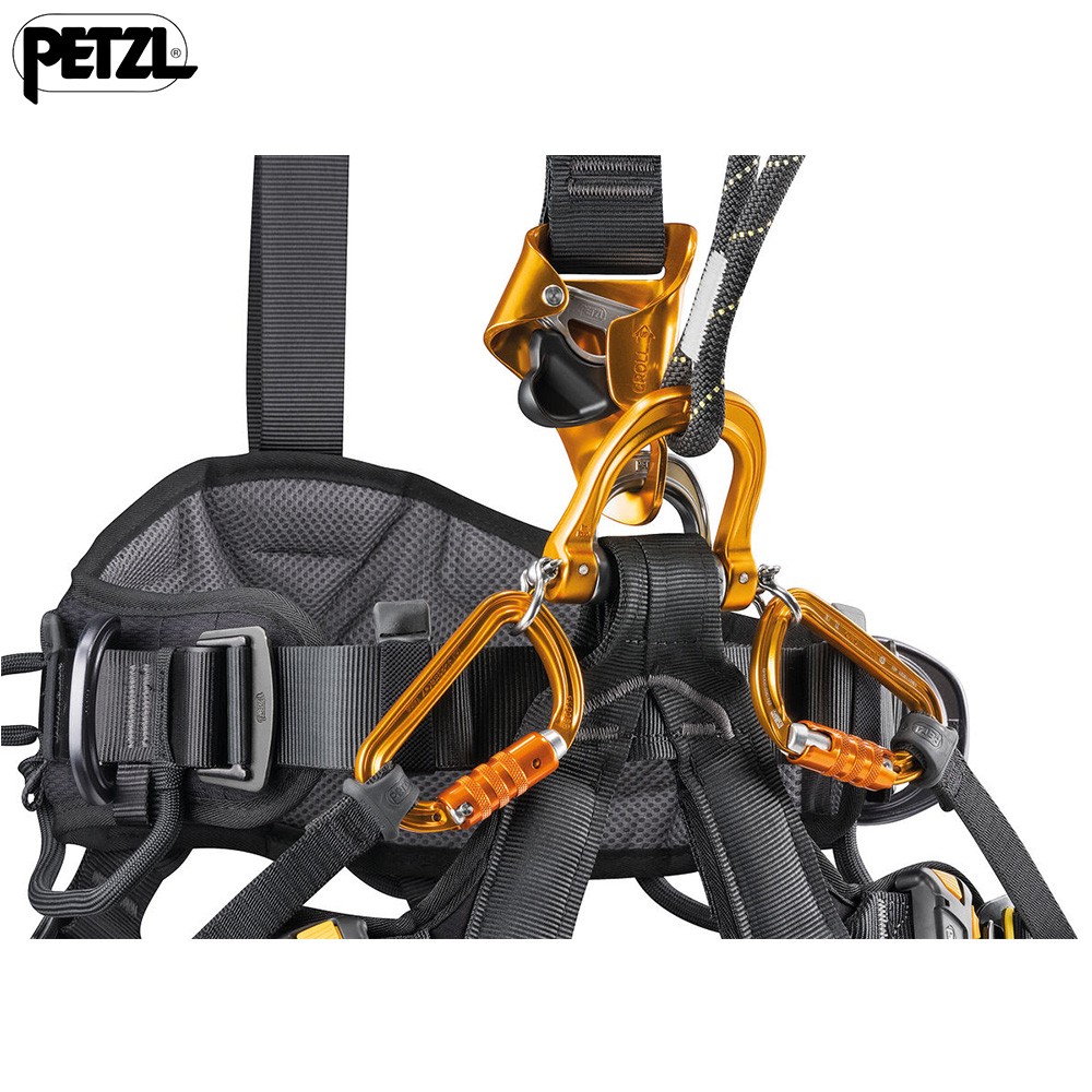 connection of the PODIUM seat on the axle of the attachment point allows the load to be supported directly by the descender, while guaranteeing mobility at the ventral attachment point