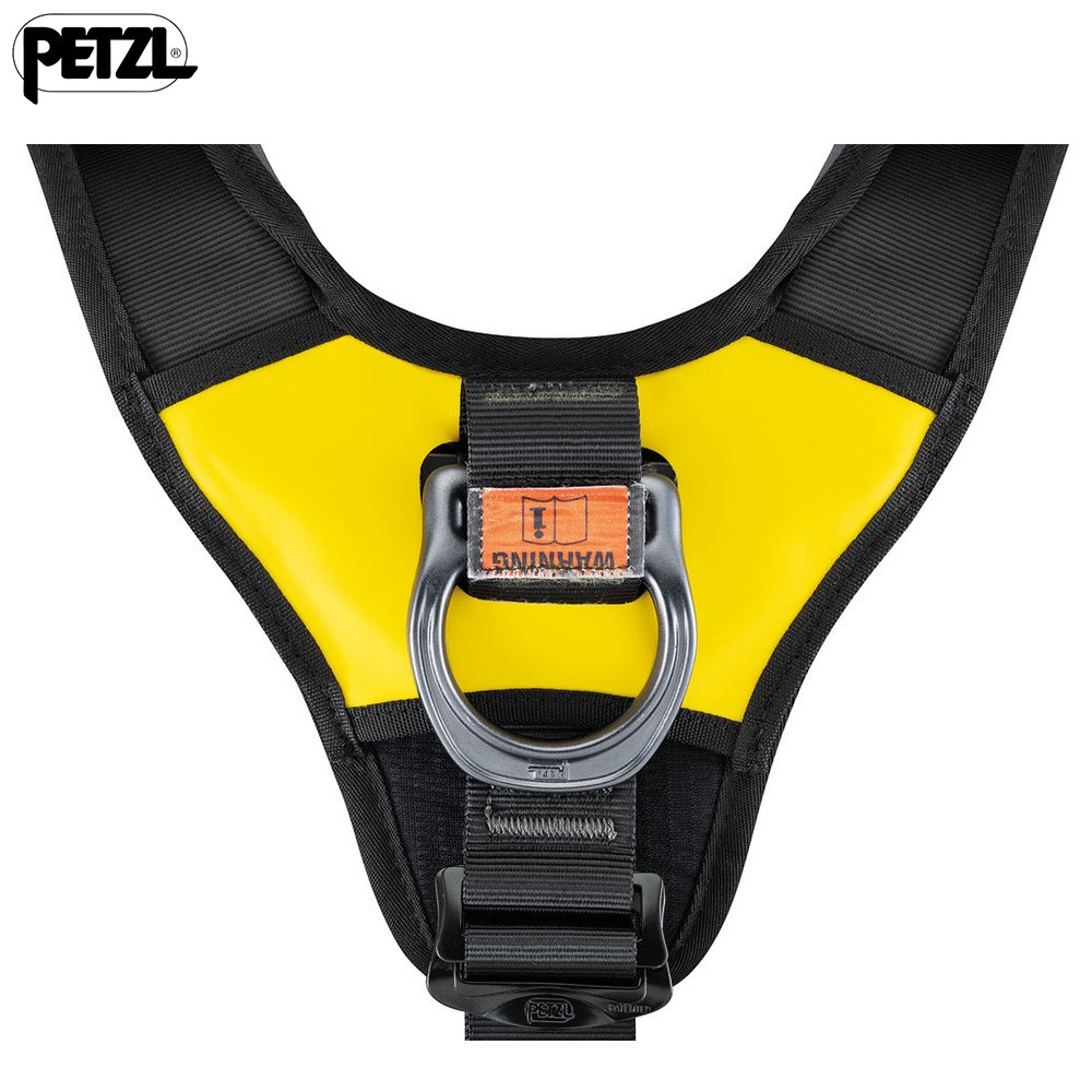 A red strap appears on the dorsal attachment point after a fall to indicate that the harness should be retired