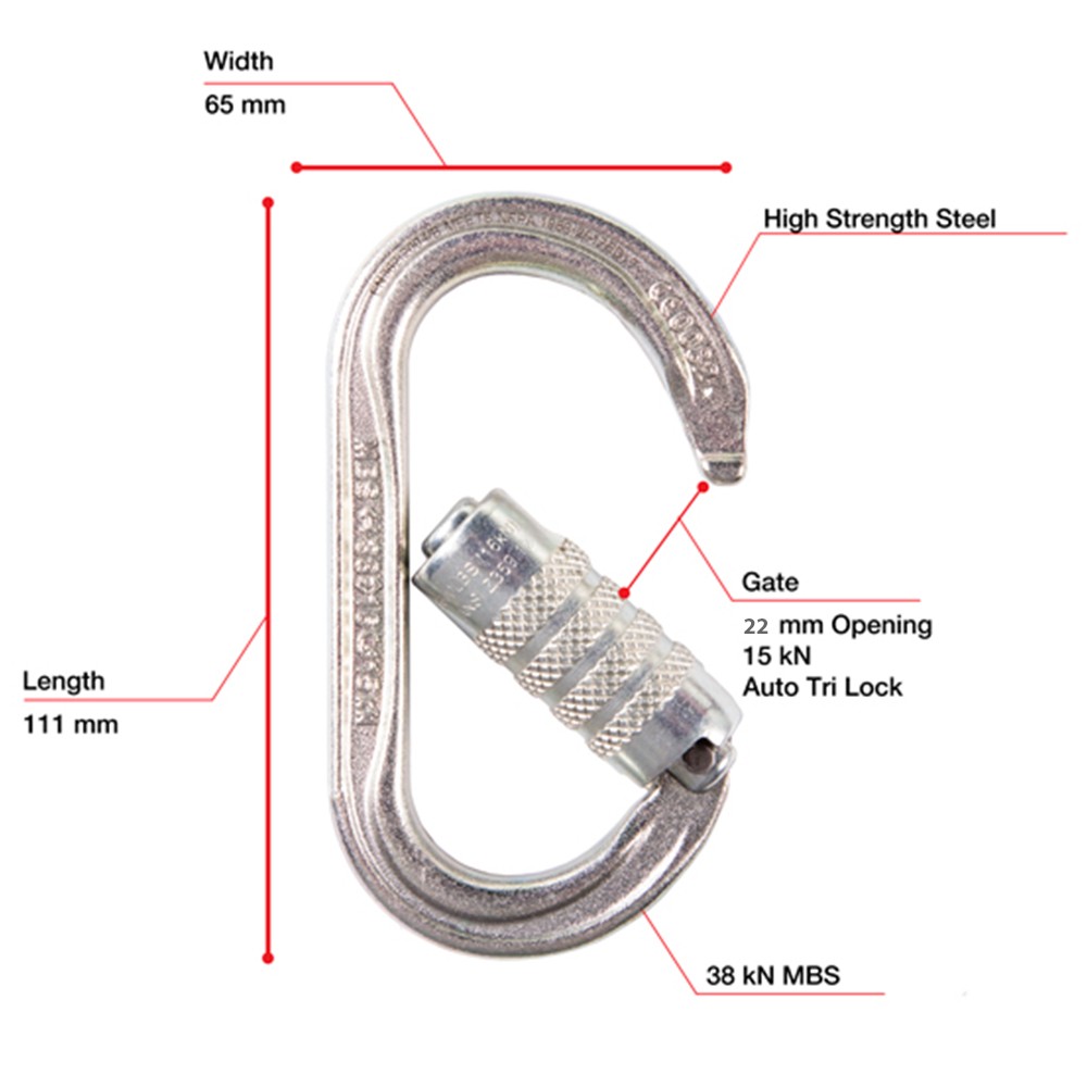 - The oval symmetrical shape allows optimal positioning of the carabiner