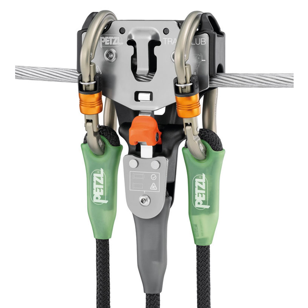 TRAC CLUB is an easy-to-use trolley designed for adventure parks. It is ergonomic, with excellent grip, and allows the client to install the trolley on the cable with one hand. The ends are equipped with protective impact surfaces to reduce the risk of pinched fingers, and two connector support grooves to help avoid abrasion from the cable. The JOKO and AVENTEX lanyards are directly integrated in the trolley, limiting the risk of separation or loss. Product life is extended with extremely durable bearings and removable impact surfaces available as spare parts.