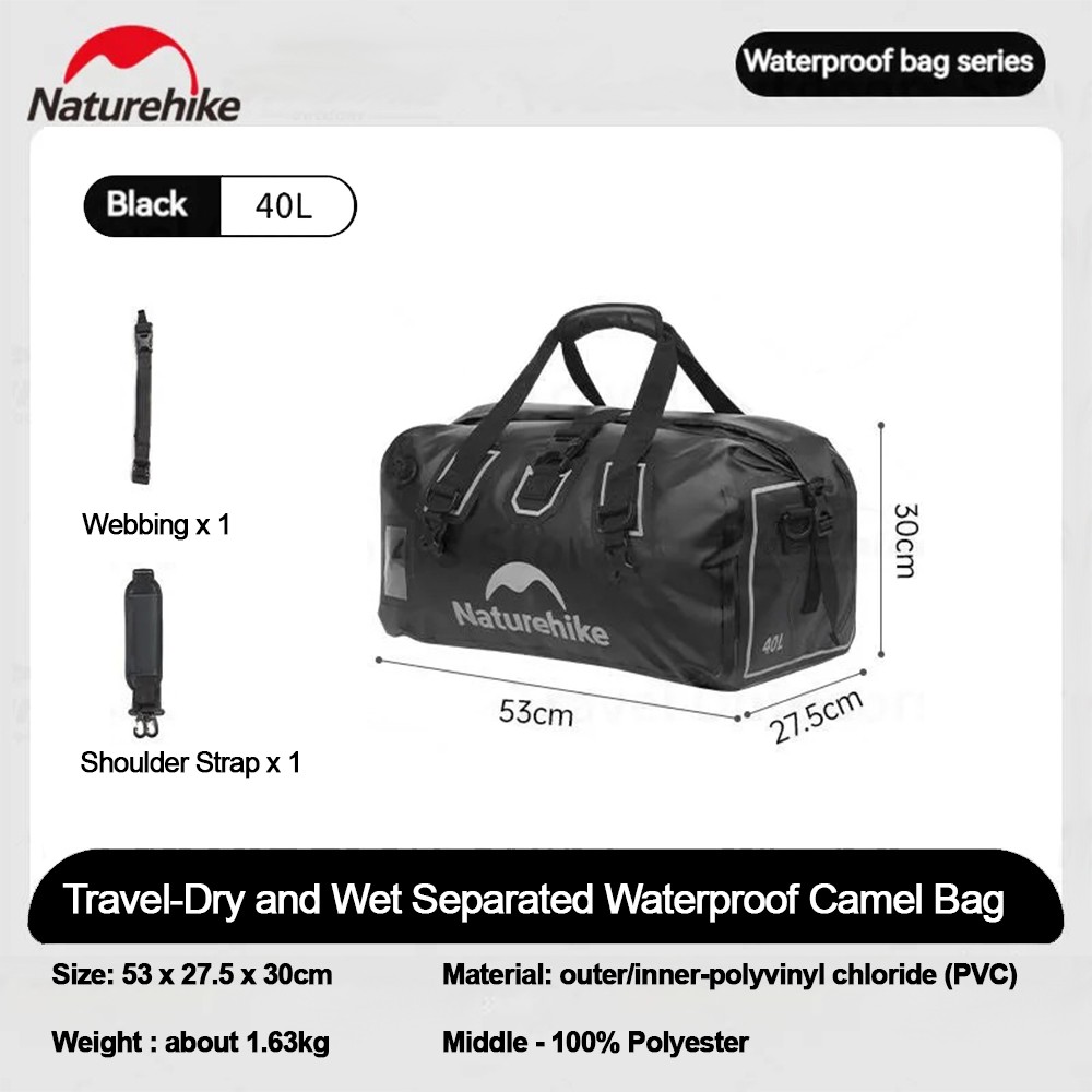 Naturehike 40L 60L 90L Large Capacity Dry and Wet Separation Waterproof Camel Bag