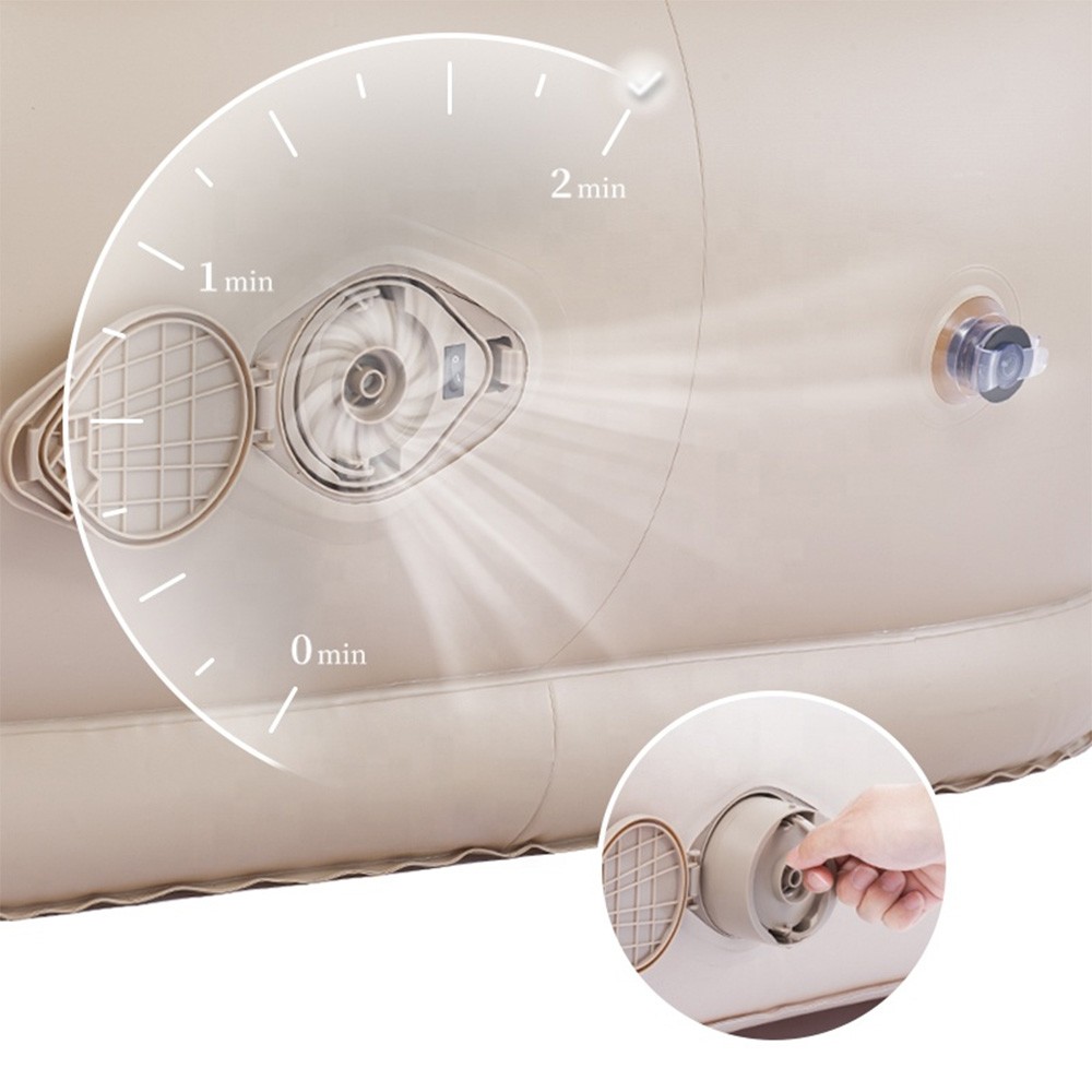 A very comfortable outdoor inflatable sofa. Higher backrest design, naturally fit the neck curve, the head does not hang, lying more easily. Double-layer air column structure, provide stable support force good resilience, strong pressure resistance. Contact instantly relieves stress. Let you enjoy a cozy relaxing time.