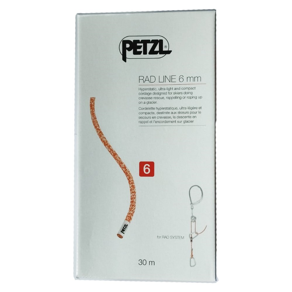 Designed for skiers, the RAD LINE 6 mm is an ultra-light and compact cord for crevasse rescue, rappelling, or roping up on a glacier to get out of a crevasse zone. It is hyperstatic and flexible, and features a rough sheath for excellent grip and easy handling. It is available in two lengths: 30 and 60 meters.