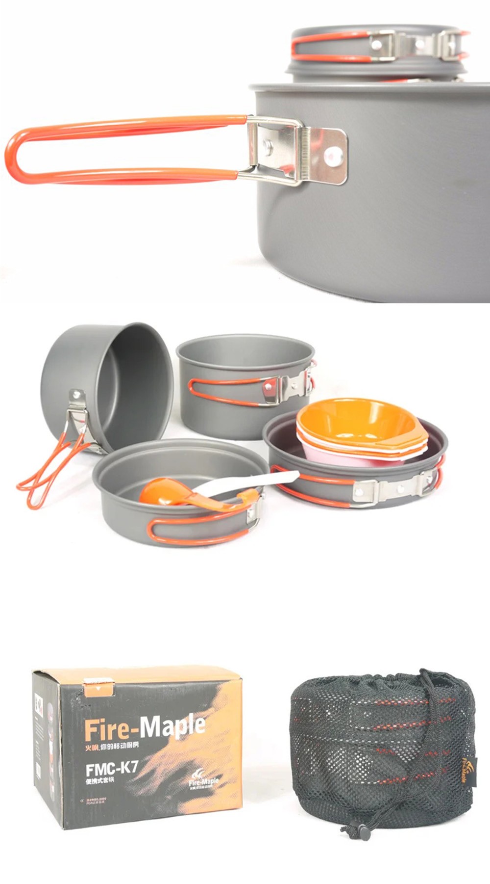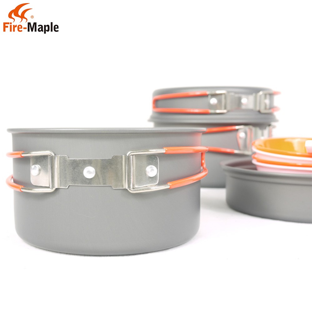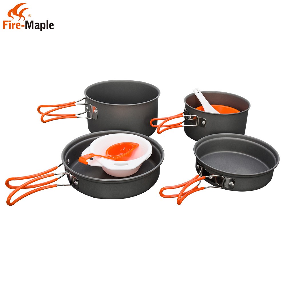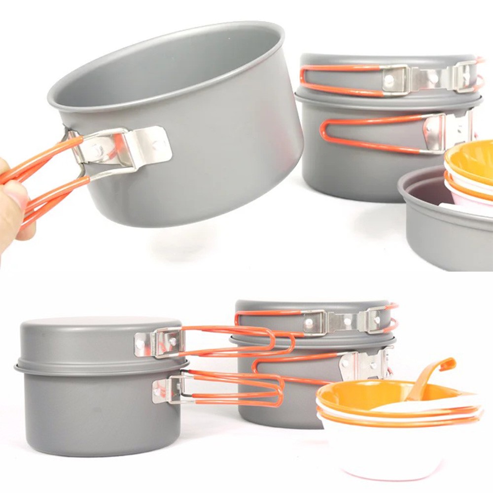 A set including utensils covers general activities without compromising on weight for mobility. Nested design compacting the entire set into one. Practically designed both pan can be dual used as lid when needed. Made of layered hard-anodized alloy featuring with easy clean, abrasion resistant & durability. Precisely constructed assuring every parts dependable. Every utensil comes with fold-away insulated handle. Experience joyful outdoor cooking.