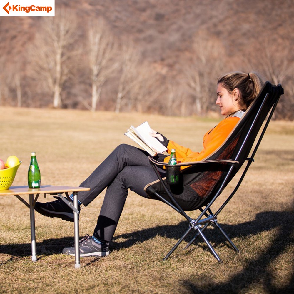 KingCamp lightweight folding chair is a high back style, with a padded headrest that can provide you full support for the back, neck, and head, which is more suitable for extended time rest in outdoor activities such as garden patios, music festivals, concerts, park, barbeque, tailgating, trekking, cycling, climbing. Its foldable, lightweight, and compact structure makes it easy to carry and store. Durable material makes you reliable to relax. Besides, breathable mesh material can make you feel cool in a hot climate, and the added pocket can store your belongings. The cup holder can keep your drinks at hand. Your comfortable and wonderful outdoor experience is our greatest wish.