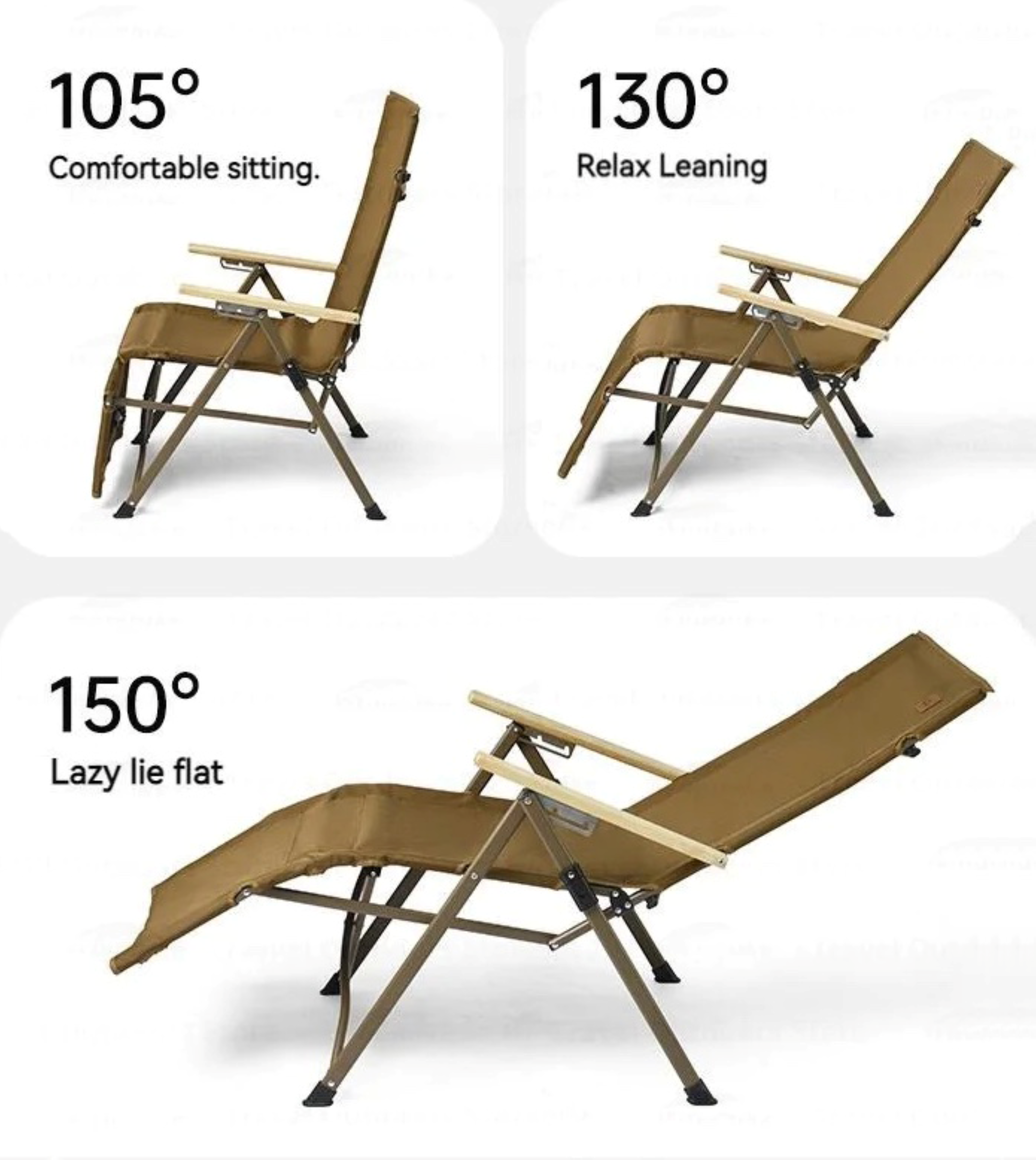 - It features a 3-stage adjustable backrest (105°, 130°, 150°), breathable fabric, and supports up to 120 kg, designed to fit the natural contours of the body.