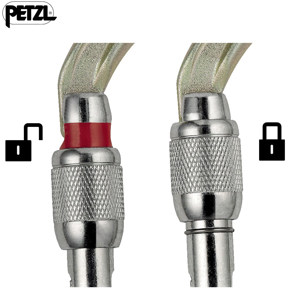 - SCREW-LOCK : the manual screw-lock with a red band provides a visual warning when the carabiner is unlocked