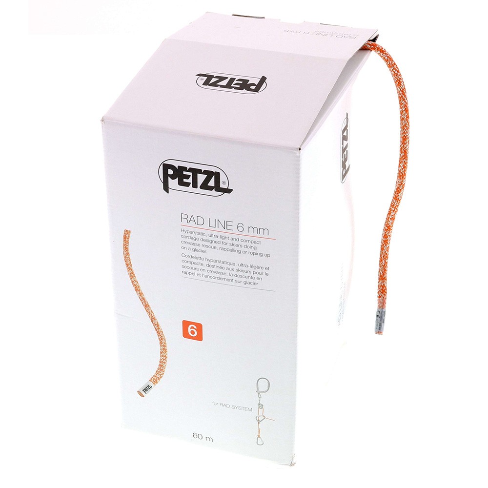 Designed for skiers, the RAD LINE 6 mm is an ultra-light and compact cord for crevasse rescue, rappelling, or roping up on a glacier to get out of a crevasse zone. It is hyperstatic and flexible, and features a rough sheath for excellent grip and easy handling. It is available in two lengths: 30 and 60 meters.