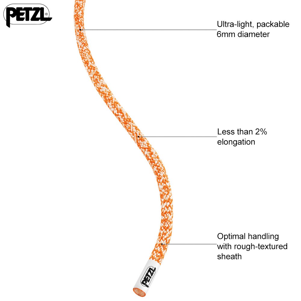 Ultra-light and compact hyperstatic cord designed for skiers doing crevasse rescue, rappelling, or roping up on a glacier to get out of a crevasse zone