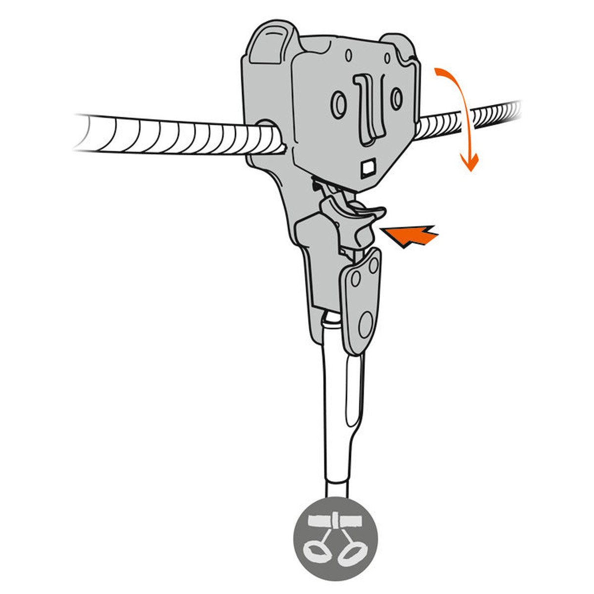 Ergonomic opening system allows the client to easily install the trolley on the cable with one hand